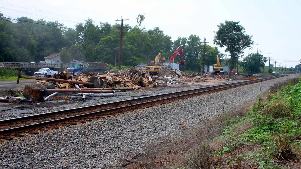 The building survived into the early 2010s. Railfan photos and trip guides for Norfolk Southern’s Hagerstown line still show a “large brick ex–N&W station” standing between Summit Point Pike and Middleway Pike at Charles Town. Demolition was under way by August 9, 2012, as contemporary photographs from that date show heavy equipment tearing into the structure, and the depot was completely gone by later that month.